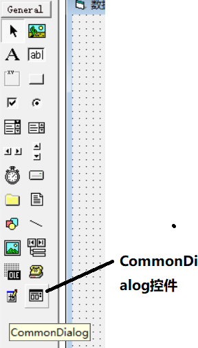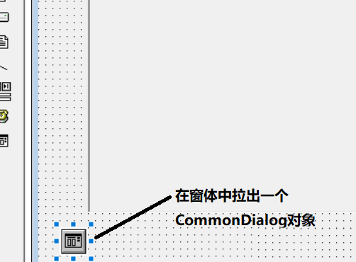 3、操作成功后可以在工程的工具欄看到一個(gè)新控件“CommonDialog”,選擇該控件,在窗體中拉出一個(gè)實(shí)體。