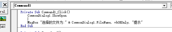 5、在程序中使用CommonDialog打開(kāi)一個(gè)文件對(duì)話框只需要調(diào)用:CommonDialog1.ShowOpen。之后即可使用CommonDialog1.FileName獲取所選擇文件的全路徑,如果沒(méi)有選擇文件則返回空字符串。