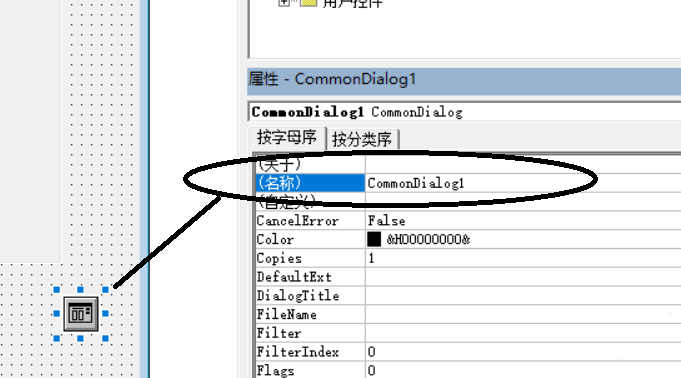4、對(duì)新添加的控件命名,默認(rèn)為“CommonDialog1”。