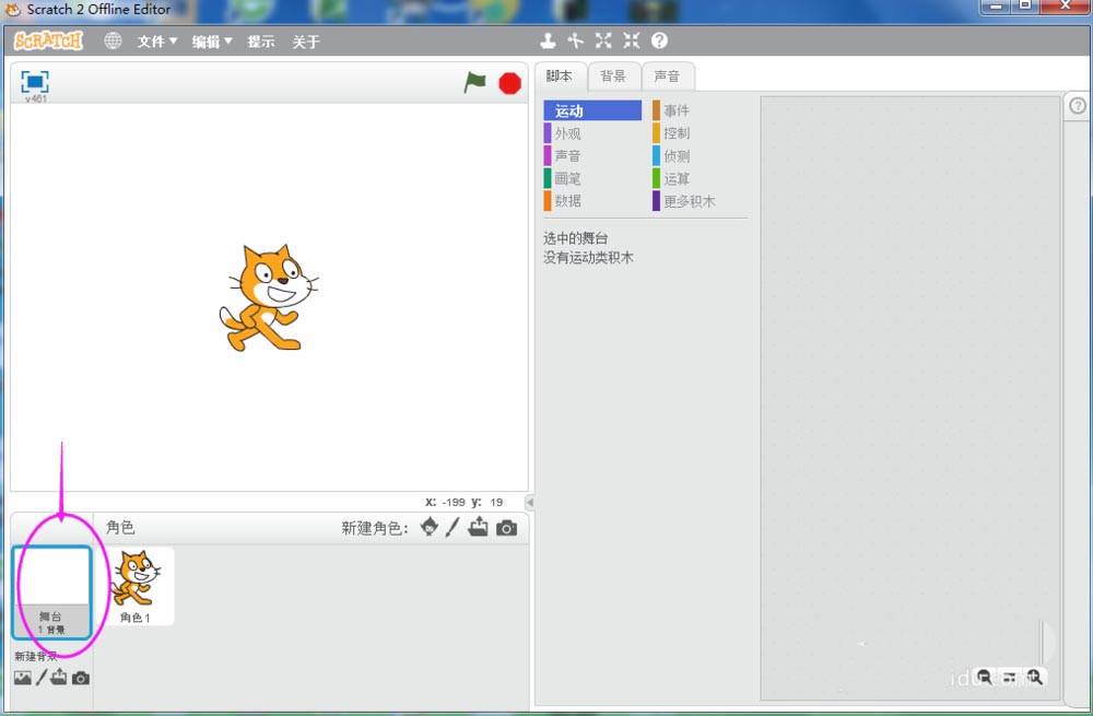 3、用鼠標(biāo)點(diǎn)擊舞臺,選中它,進(jìn)入舞臺的編輯模式;