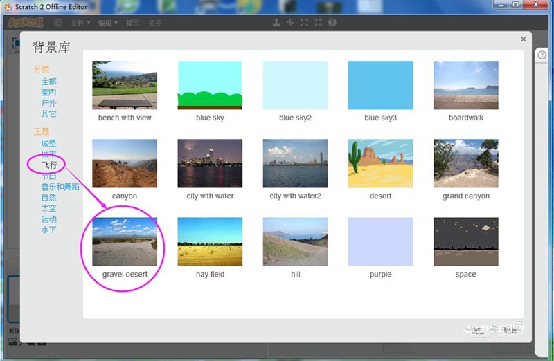 6、點(diǎn)擊飛行類別,找到需要的沙漠背景圖;