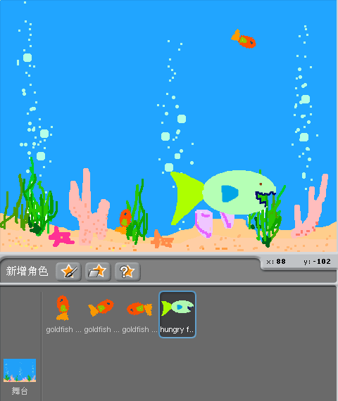 以上就是scratch創(chuàng)建大魚吃小魚的小程序的教程,希望大家喜歡,請(qǐng)繼續(xù)關(guān)注武林網(wǎng)。
