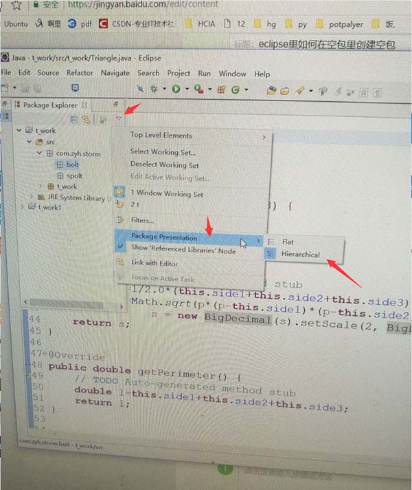 1、先確認eclipse下的是選擇的hieraechical,package presentation --》 hieraechical
