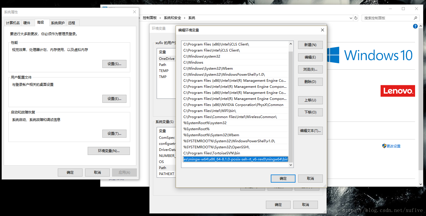 安裝完成后,需要將MinGW-m64的安裝路徑下的bin文件夾添加到系統的環境變量path中。