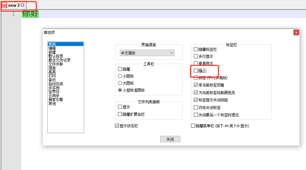 5、在常用中取消勾選右側【標簽欄中的縮小】后你會發現標簽欄大了