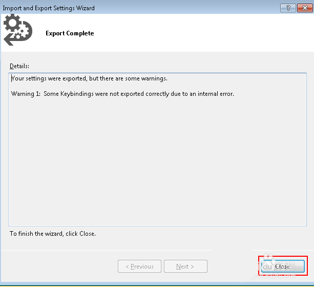 5、然后等待導(dǎo)出完成的消息,如圖,點(diǎn)擊“close”關(guān)閉