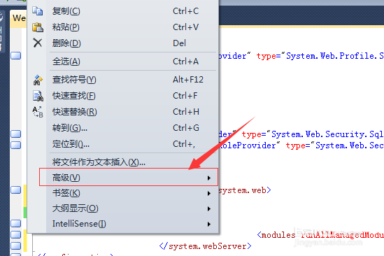 4、點擊編輯之后,彈出了下拉菜單選中為“高級”的選項菜單。