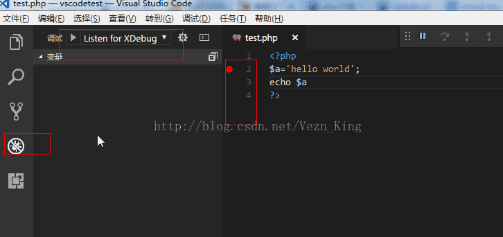 5.最后就可以在vscode里面設置斷點調試了,注意,一定要以打開文件夾的形式才能成功設置斷點調試,單個文件無效