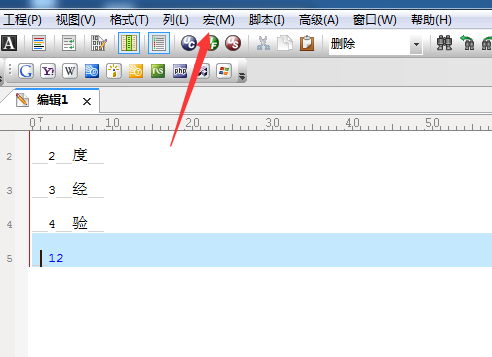 2、進行點擊UltraEdit的菜單中的 進行點擊菜單中的宏的選項。