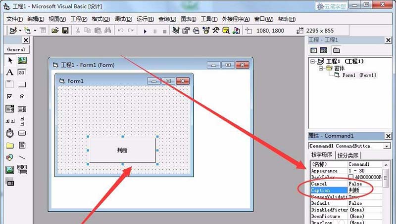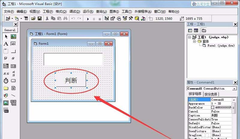 5、雙擊判斷按鈕,打開代碼編輯窗口。