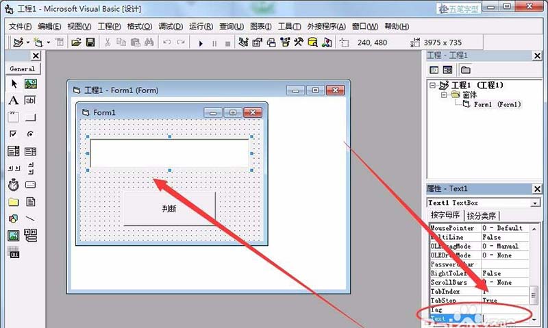 4、在設計區域,繪制一個文本框,將Text的值設置為空。