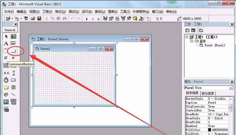 1、打開VB6,選擇左側工具箱中的CommandButton按鈕。