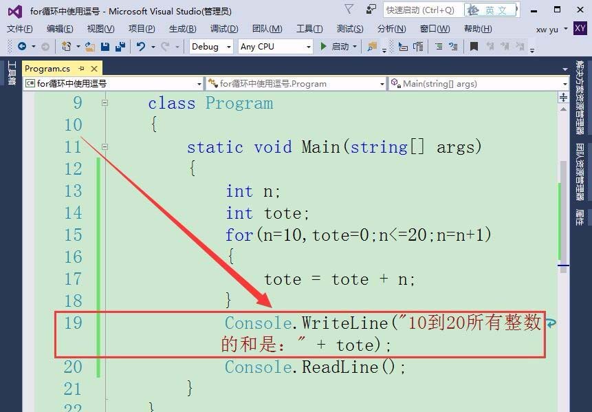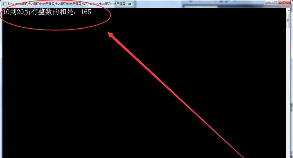4、最后,在窗口中輸出10到20所有整數的和,如下圖所示。