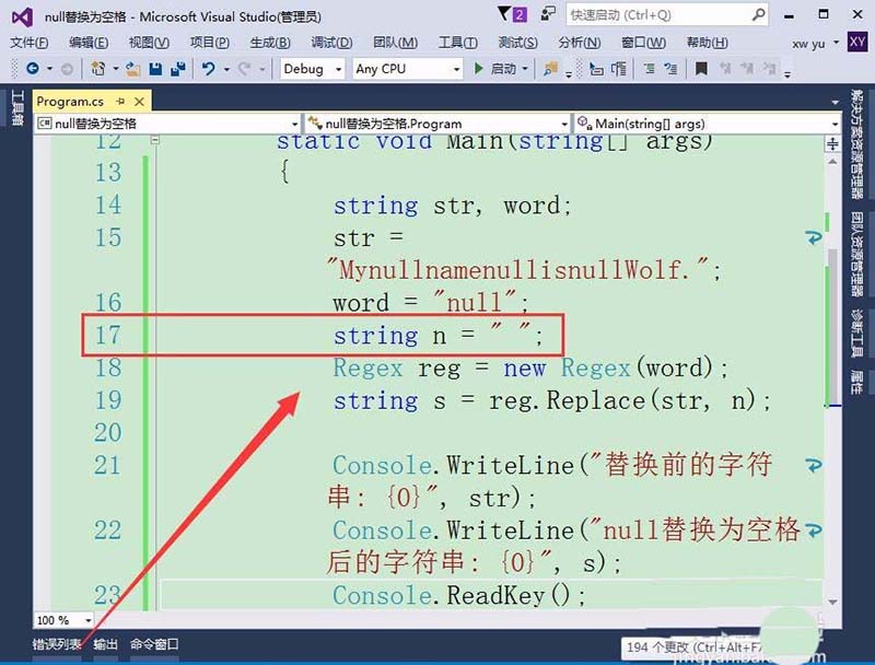 VisualStudio2015編程開(kāi)發(fā)的時(shí)候,字符串“null”表示空格,如果直接輸出顯示是錯(cuò)誤的,需要將字符串“null”轉(zhuǎn)化為空格null,該怎么轉(zhuǎn)換呢?請(qǐng)看下文詳細(xì)介紹。