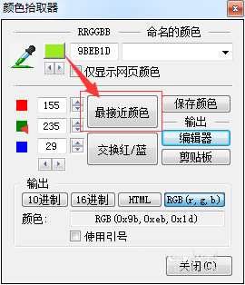 4、點擊了顏色的選項之后,彈出了一個顏色拾取器窗口當中,點擊最接近顏色按鈕。