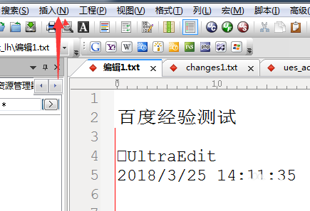 2、點擊UltraEdit的菜單中的插入的菜單。