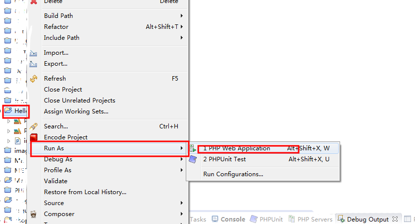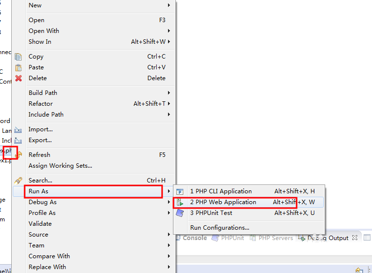 1、右鍵選擇項目名稱 依次選擇Run As -->PHP Web Application