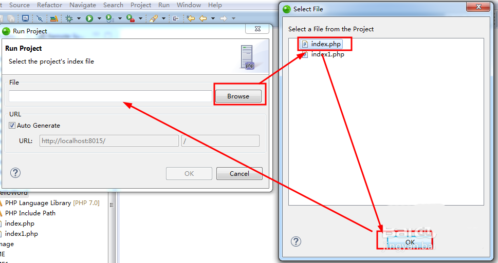 2、然后,在新的彈窗口中選擇Browser,選擇你想要運行的PHP文件,點擊OK按鈕