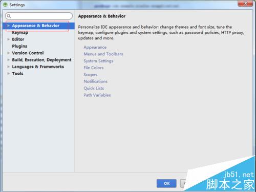 3、進入到了setting的設置界面中之后,在進行選中appearance&behavior的選項。