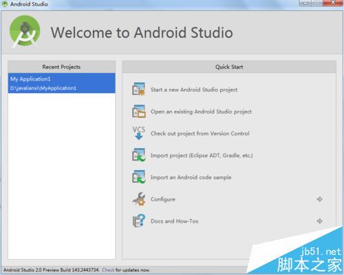 在進行使用的android studio的進行對android項目上開發時,可能需要對android studio的各種上設置已達到自己需要的設置功能,那么在進行使用android studio默認的情況下,打開android studio之后就會自動打開一個項目的。
