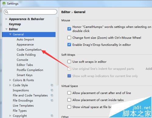 4、進行選中的general,然后在進行選中為code completion的選項。
