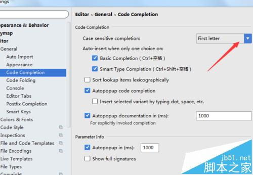 5、進入到了code completion的選項中之后,進行選中first letter的選項。