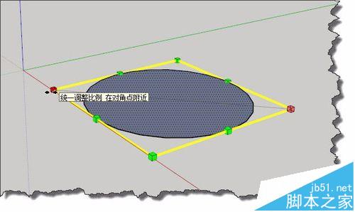 3、我們先對一個簡單的二維對象進行縮放,選擇“縮放”工具,點擊選擇對象后,你可以看到綠色的柵格。