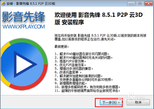 下載好軟件之后,點擊打開影音先鋒軟件進行安裝(點擊之后,會列出當前版本和更新的項目)下一步