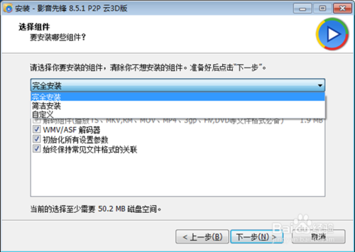自定義安裝組件:除此之外你也可以選擇默認的典型安裝,其實軟件不大安裝全部吧