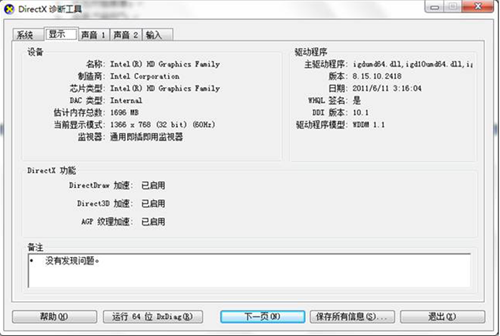 4、下方DirectX功能若為“已禁用”,則需重新安裝顯卡驅(qū)動或更新DirectX版本; 點此下載更新