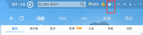 1、點擊酷狗音樂播放器右側上方形狀像衣服一樣的圖標,就可以選擇您喜歡的皮膚和顏色了。如下圖所示: