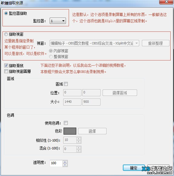 看一下上面的圖片注釋,默認(rèn)即可點(diǎn)擊確定,就可以添加屏幕錄制區(qū)域了。