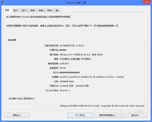 方法:通過單擊“開始”按鈕,在“搜索”框中鍵入 dxdiag,然后按 Enter,打開“DirectX 診斷工具”。