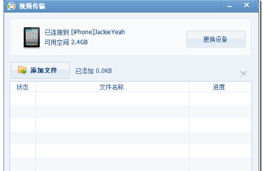 QQ影音會自動尋找同WiFi下的iOS設備,如果找到多個,會讓你選擇其中的一個,然后就可以傳輸了。