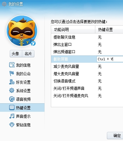 打開“我的設置”有個“熱鍵設置”,點擊"熱鍵設置"進入頁面點擊“截取屏幕”;