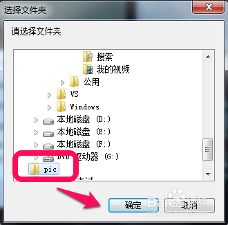 3、選擇電腦上存放的文件夾,確認,如圖。