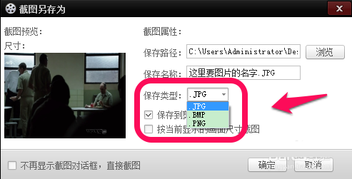 5、先擇圖片的保存格式類型,目前分為jpg、bmp、png三種格式。如圖。
