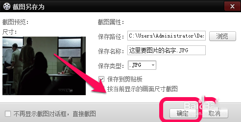 百度影音在菜單上點擊“截圖”后,在屏幕左上角會顯示截屏是否成功了。如果截圖成功,截圖會缺省保存到“我的文檔”中的“百度影音截圖”文件夾下。