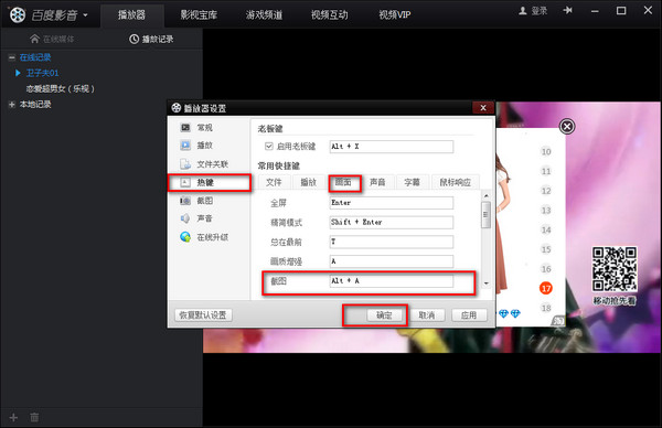 百度影音截圖快捷鍵是什么?百度影音截屏在哪里?