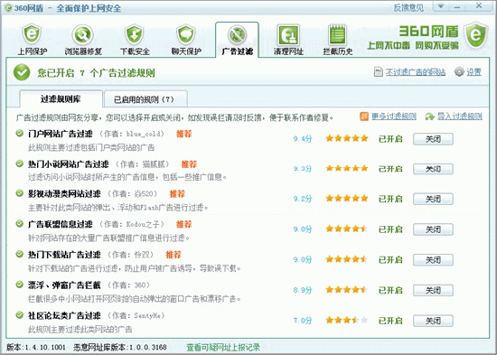 如果您使用的是360網盾,請點擊360網盾中"廣告過濾"功能按鈕: