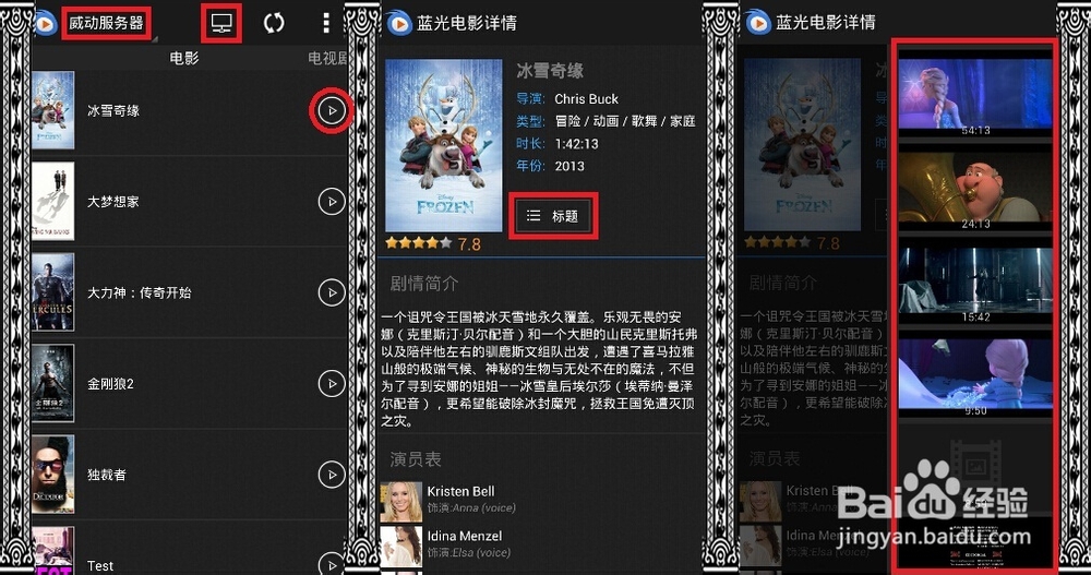 威動服務器會自動聯網加載電影的相關信息,如演員表、劇情簡介、海報等。點擊 “播放”按鈕即可觀看。