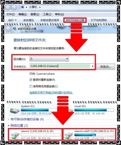 添加完成后,如圖所示:小米路由顯示為Z:盤,外接硬盤顯示為Y:盤