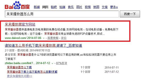 一、首先在電腦中下載安裝呆呆播放器,下載地址,大家可以百度搜索一下找到,如下圖所示:(點擊上方本站提供的下載地址,一樣可以下載使用)