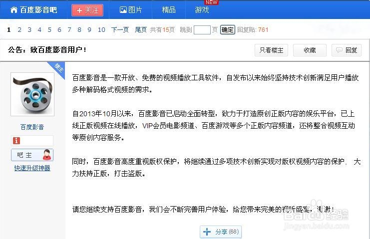 百度影音貼吧公告