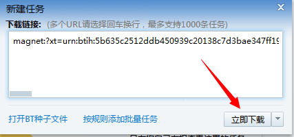 此時在彈出的窗口中會自動粘貼剪貼板中的磁鏈,點擊”立即下載“按鈕就正式進入視頻下載過程。