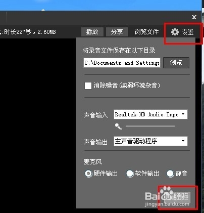 5、右上角有一個設置按鈕,可以設置錄音伴唱的基礎功能,設置OK后點擊確定保存。