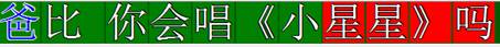 接下來,繼續按右鍵,等到多媒體播放器中的“比”快要變顏色而又未變顏色的時候,再按小鍵盤上的5或空格。這時工具欄上的“爸比”都變了顏色。以次類推,當“多媒體播放器”的“爸比 你會唱《小星星》嗎”變成藍色的時候,工具欄的“爸比你會唱《小星星》嗎”變了顏色。