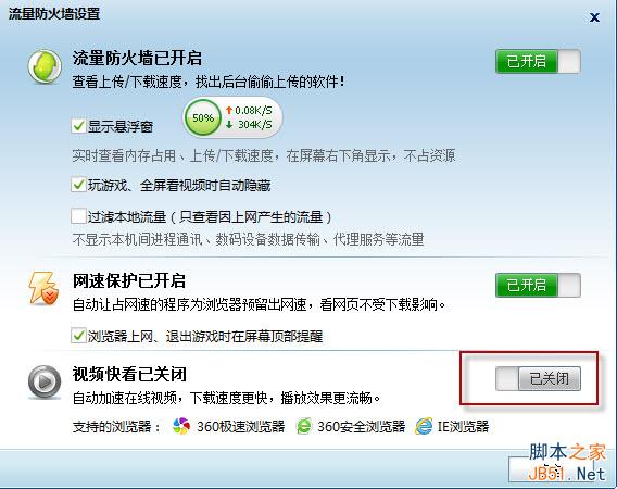 注意:360視頻快看功能目前只支持360極速瀏覽器、360安全瀏覽器和ie瀏覽器。