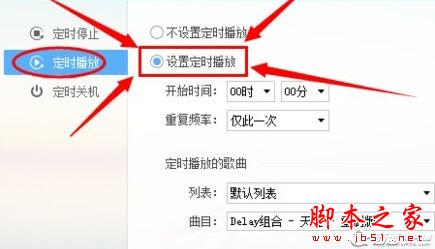 2.在設置窗口中選擇“定時播放”項,起初是默認為了“不設置定時播放”。現需選擇“設置定時播放”。