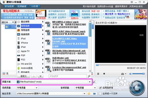 再則就是選擇格式了,這里的格式真的很多,有常用,也有手機方面的: